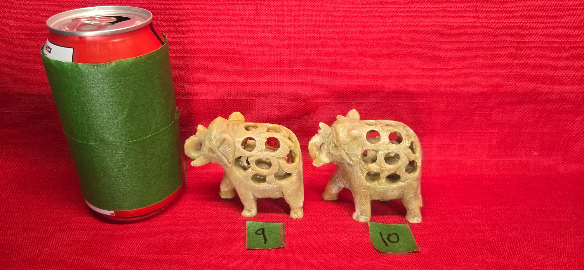 Ensemble de 2 figurines d'éléphants vintage en stéatite sculptée à la main, avec un éléphanteau à l'intérieur