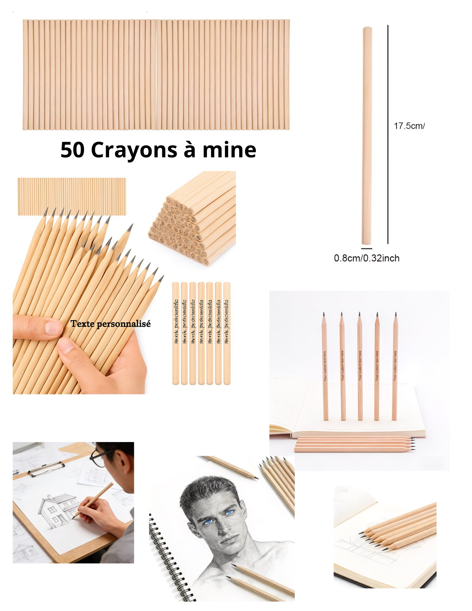 Crayons en Bois Lisse pour Dessin, Croquis, Écriture Sans Traînée, Idéal pour Bureau, École, Fournitures, Cadeau Personnalisable