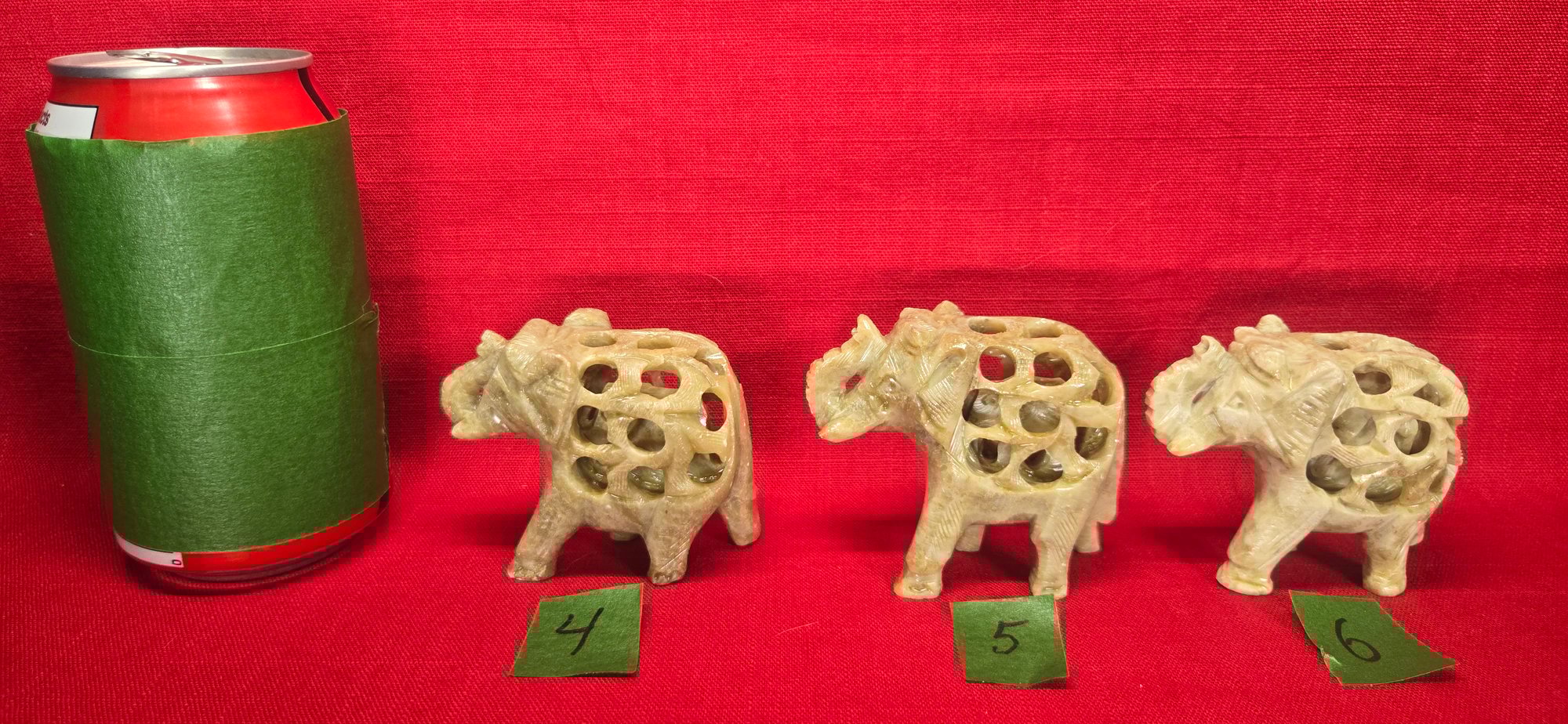 Éléphant vintage sculptée à la main en stéatite, avec bébé à l'intérieur - Lot de 3 #2