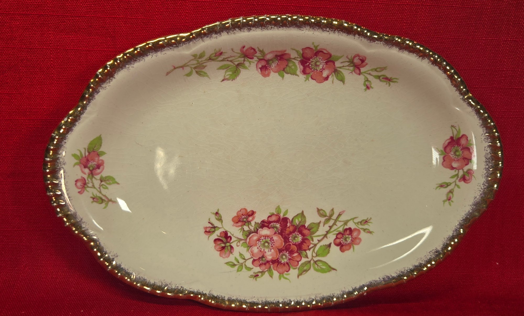 Saucière en ivoire, ornemanté d'or avec soucoupe Woods, Angleterre