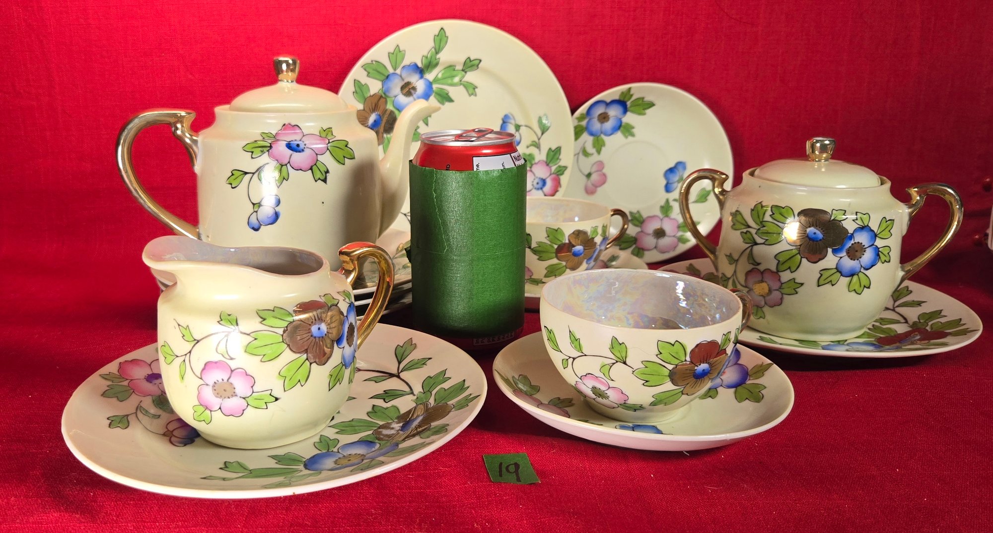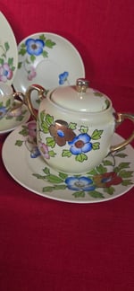 Théière, Pot a lait, Sucrier, 2 Tasses et petites assiètes